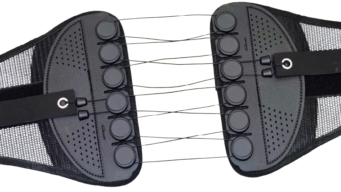ガードナーベルトは左右のストリングを目一杯引いて絞り上げることで骨盤を起こす。なので長時間着用していると、腰は楽なんだけどベルトの当たる骨盤が痛くなる。