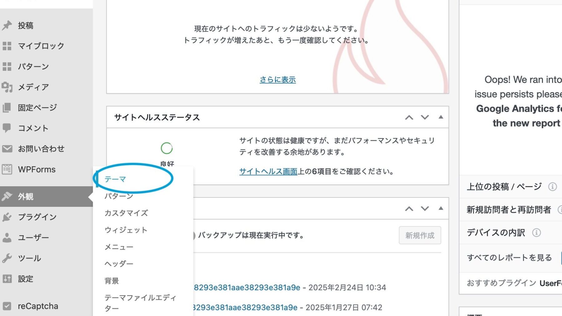 「テーマの更新に成功しました。」と表示されたらOK。
