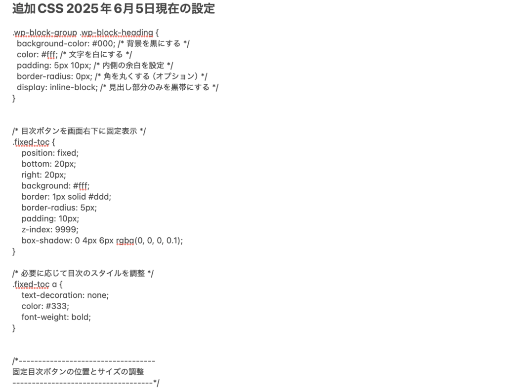 事前に追加CSSを全てコピペしておく