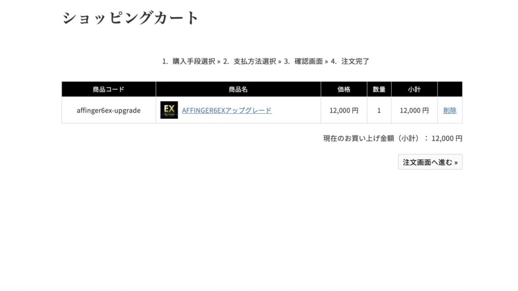 といってもすでにAFFINGER6を購入した際のアカウントがあるはずだから、それを使って同じようにカートに入れて決済すれば良いだけ。