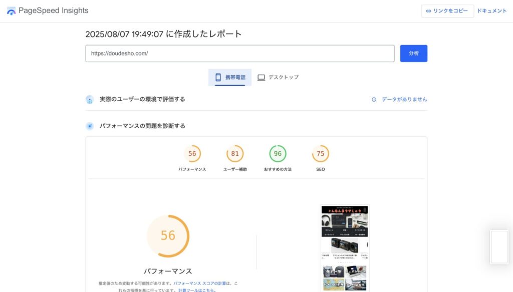 実際、こんなんどうでしょうよりも有名でドメインパワーのあるブログサイトでもパフォーマンススコアは悪かったりした。