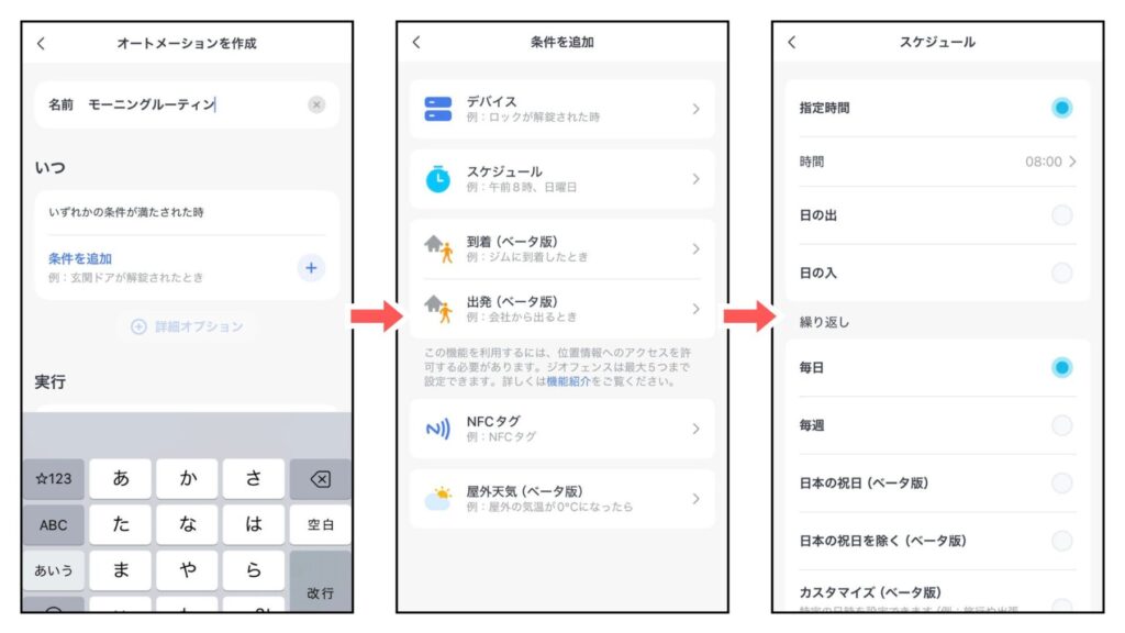 上で紹介したモーニングルーティンはこんな感じで設定できる。