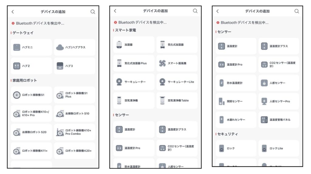 アプリストアからSwitchBotのアプリをダウンロードして会員登録。それが済んだらアプリのホームから「+デバイスを追加」をタップして、SwitchBot ハブ3をアプリに登録するといった流れ。