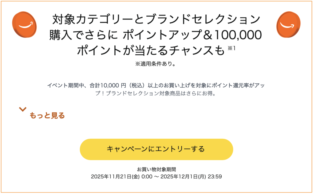 対象のブランドや購入方法でポイントアップも狙えるから、可能な範囲で狙っていきたい。具体的なポイントアップ方法は下記。