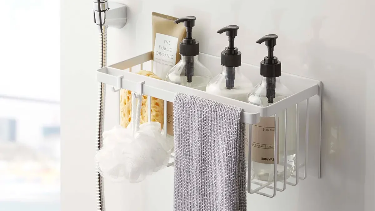 シャンプーやリンス、タオル、清掃用のスポンジなんかを一箇所にまとめられるバスルームバスケット。子供のいる家庭であれば風呂用のおもちゃ入れなんかにするのもあり。