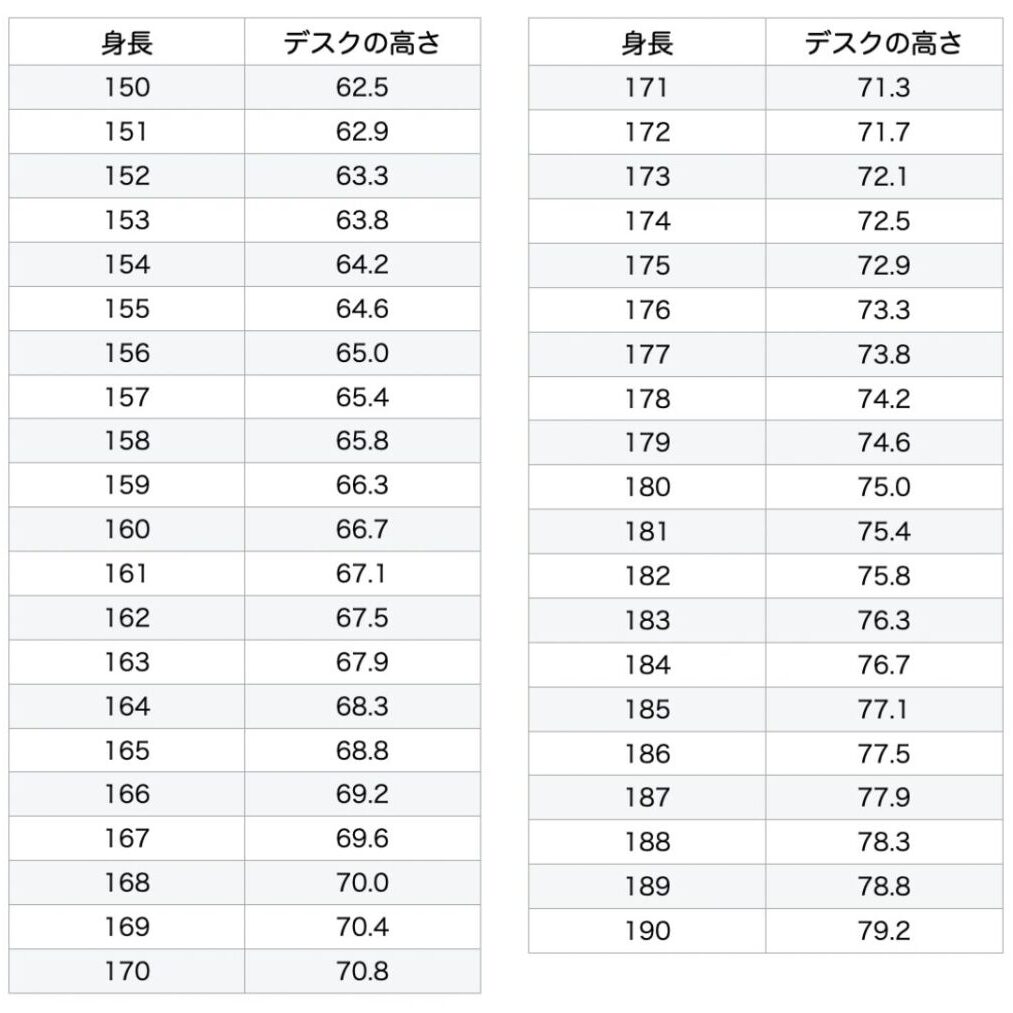 フレキシスポットの最低高さはほとんどの機種が58〜60cmくらいなんだけど、種類によっては70cm〜といったものもある。最低高さ70cmとなると身長が低い人はイス側の高さを出す必要があるんだけど、すると今度は足が着かないからフットレストを用意しないといけない。って感じで、身長によっては最低高さが大事だったりする。