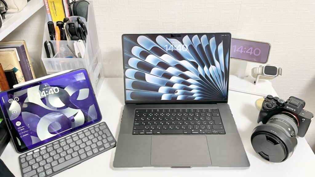外で作業をする時や本を読むときはiPad Airを使うことが多いし、打ち合わせの時はApple Pencilを使ってメモを取ったりもする。