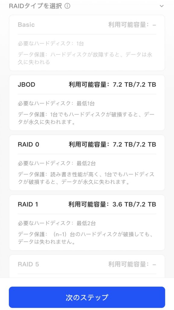 使用するHDDとRAIDタイプの設定